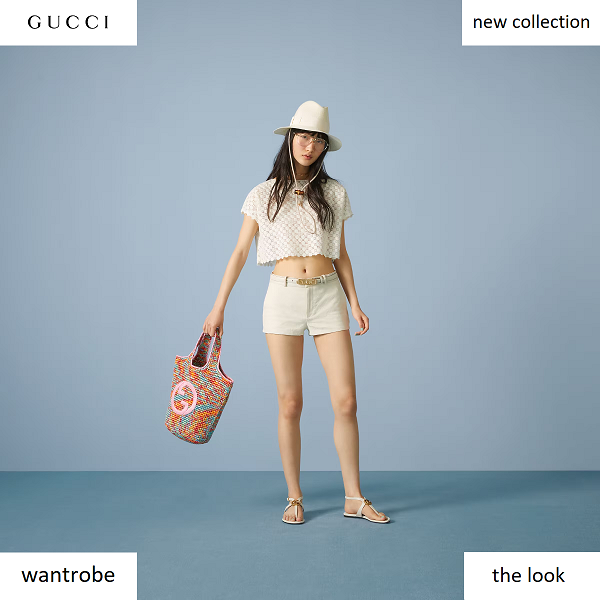 A beautiful edit from Gucci: This curated transition into Pre-Fall offers countless styling possibilities. Click to view the pieces from this look and check store availability: 1. Gucci raffia tote bag 2. Gucci thin white leather belt 3. Gucci white leather thong sandals 4. Gucci raffia-effect wide-brimmed hat 5. Gucci ivory flower lace top with removable lining 6. Gucci white canvas shorts with gold-tone hardware Want more like this? Sign up here: Disclosure: wantrobe may receive a commission when you buy using the site’s links.